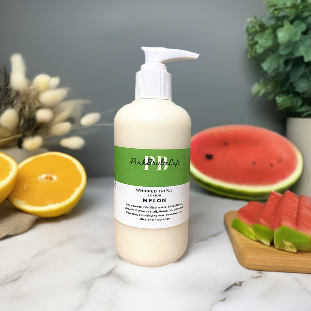 Indulge in the sweet, juicy fragrance of melon lotion, a luxurious body lotion that will transport you to a summer paradise with its notes of juicy cantaloupe, green honeydew, and sweet red watermelon.